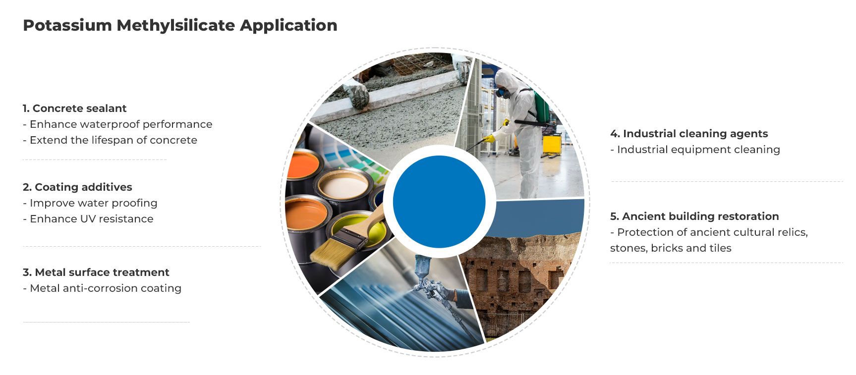 Gerçek inşaat uygulamalarında, potasyum metil silikatın su geçirmez etkisi çok sayıda mühendislik uygulamasında test edilmiştir. Potasyum metil silikattan oluşturulan su geçirmez membran, uzun süreli yağmura ve su basıncına dayanabilir, nemin bina yapısının iç kısmına nüfuz etmesini etkili bir şekilde önleyebilir, böylece binanın hizmet ömrünü uzatabilir ve bakım maliyetlerini azaltabilir.